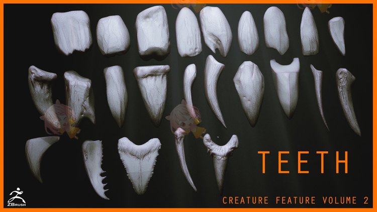 创意街 » zbrush牙齿獠牙IMM笔刷zb画笔fbx建模obj塑形ztl游戏美术雕刻图案C4356