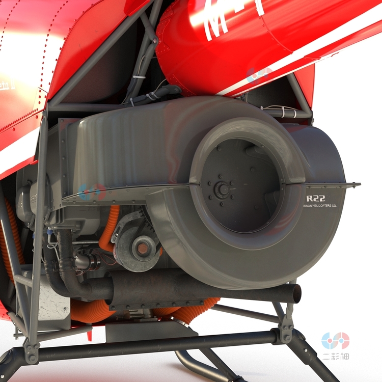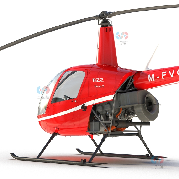 C4D仿真直升机罗宾逊R22红色3D模型建模渲染游戏电影资源maya素材C4468