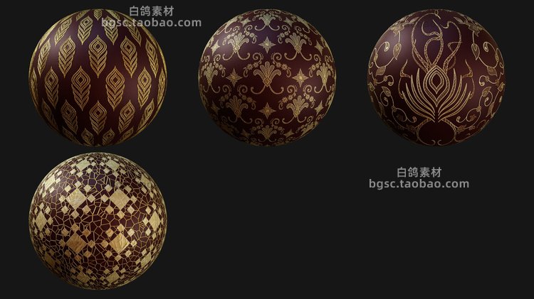 4K织物PBR花纹图案皇家尊贵典雅sbsar纹理maya贴图C4D设计3D素材B148
