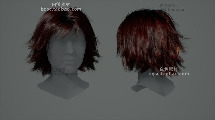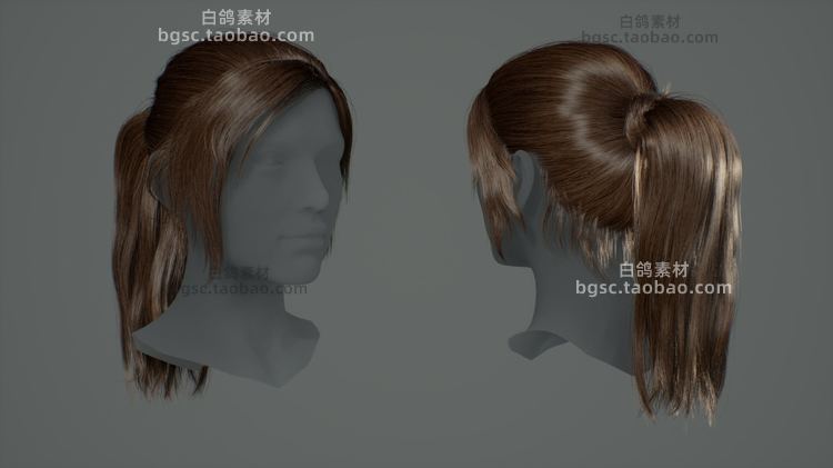 UE4虚幻4动态物理逼真女性发型女生头发模型建模短发卷发马尾素材B247