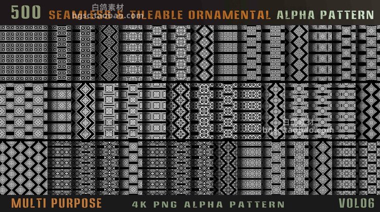 500 seamless & tileable ornamental alpha pattern-Vol06 maya无缝平铺zbrush装饰alpha图案4K阿尔法blender纹理贴图素材B277