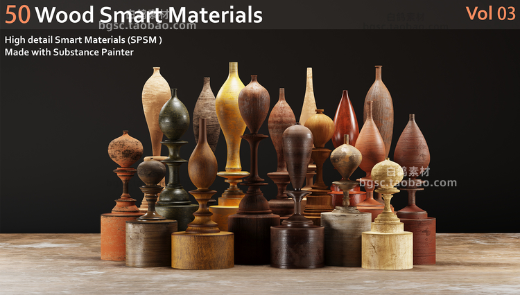 创意街 » 50 Wood Smart Materials_Vol3 Substance Painter木纹木质木板木制物体表面材质spsm纹理智能sp贴图B367