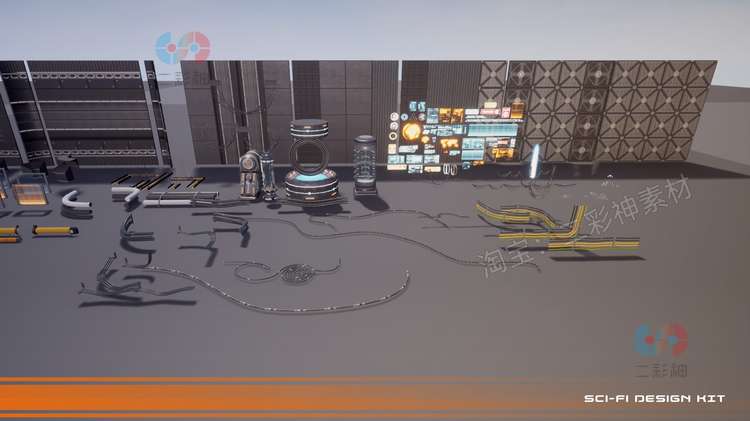 Sci-fi Design Kit UE4虚幻5科幻设计面板硬表面飞船模块化对象套件道具模型三维素材C5124