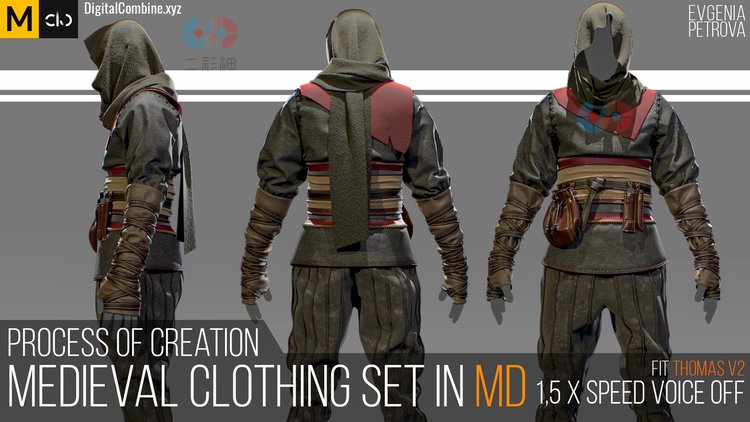 Marvelous Designer中世纪服装套装教程MD源文件衣服项目纹理素材C5373