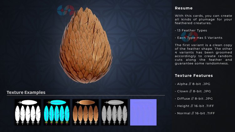 Feather Cards Texture Pack for your Feathered Creatures C4D羽毛生物纹理alpha阿尔法贴图fbx模型blend建模鸟类毛发素材C5612