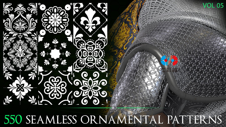 550 Tileable Ornamental Patterns (MEGA Pack) – Vol 5 Alpha平铺装饰图案花卉锦缎几何曼陀罗工具武器设备环境贴图纹理C5656
