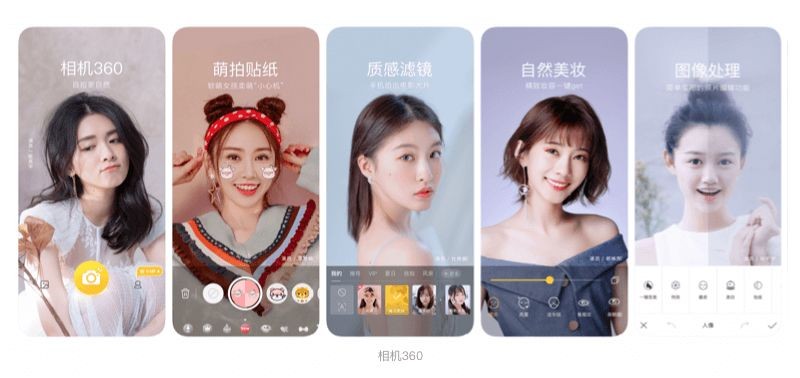 展现产品的亮点、价值、核心功能或是本次更新改版的特性等,主要是让用户快速得到有价值的信息,了解产品的功能特性,区别于竞品。一般工具型产品都倾向于选择这样的内容。如360相机,5张图分别展示了产品的5种功能。