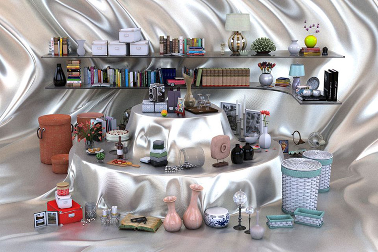 创意街 » 40组高精度家居摆设装饰物品3D模型合辑花瓶收纳台灯相框A383