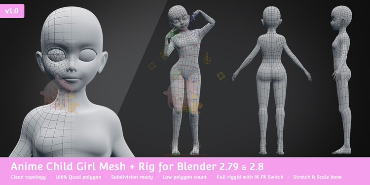 创意街 » maya 动漫儿童基础网格人物 手脚组件C4D模型OBJ格式3d素材C3161
