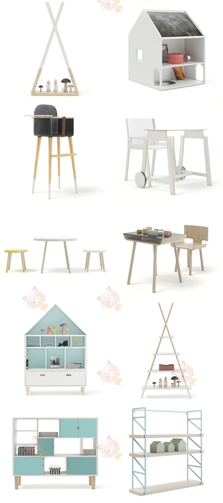 创意街 » Kids Furniture 3D Models Collection – Volume 96 C4D儿童家具obj单人床fbx双人床书桌橱柜喂食椅衣柜3D max模型CG96