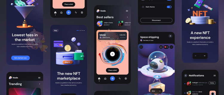 创意街 » Node – Crypto NFT iOS UI Kit NFT加密钱包ios手机app应用程序UI套件模板sketch界面figma设计xd U37