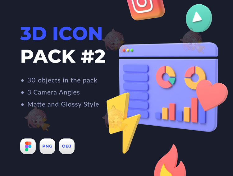 3D Icon Pack #2 C4D渲染卡通3D图标集maya模型figma设计素材源文件可视化图表办公C3694