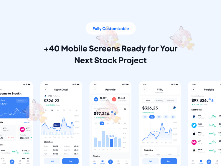 Stockit – Stock Market App UI Kit 股票市场应用UI套件模板figma用户界面设计素材源文件移动程序app U60