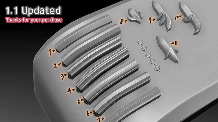zbrush花边花纹勾边装饰IMM笔刷zb画笔建模塑形纹理填充雕刻图案C4015