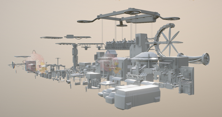 C4D赛博朋克UE4城市资产3D模型blend渲染fbx建模obj素材maya设计C4098