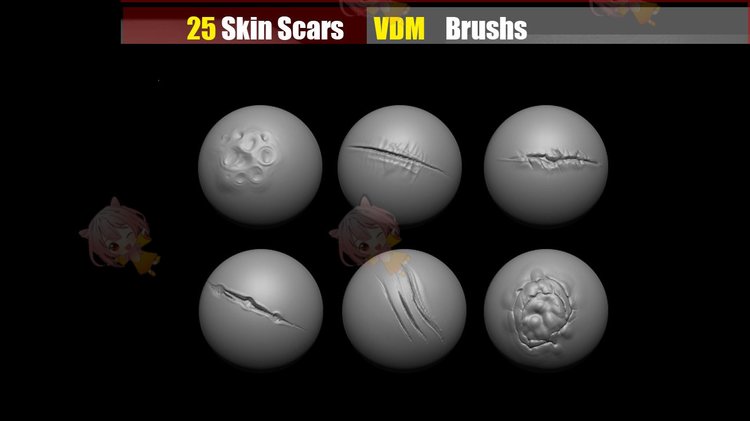 创意街 » zbrush疤痕割伤刀疤创伤伤口烫伤VDM笔刷zb画笔建模塑形纹理图案C4230