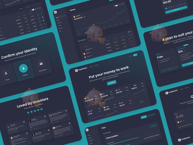 CryptoHunt | Design System for Sketch (Dark Mode)模块化设计系统暗模式sketch屏幕元素组件Web应用程序设计素材U808